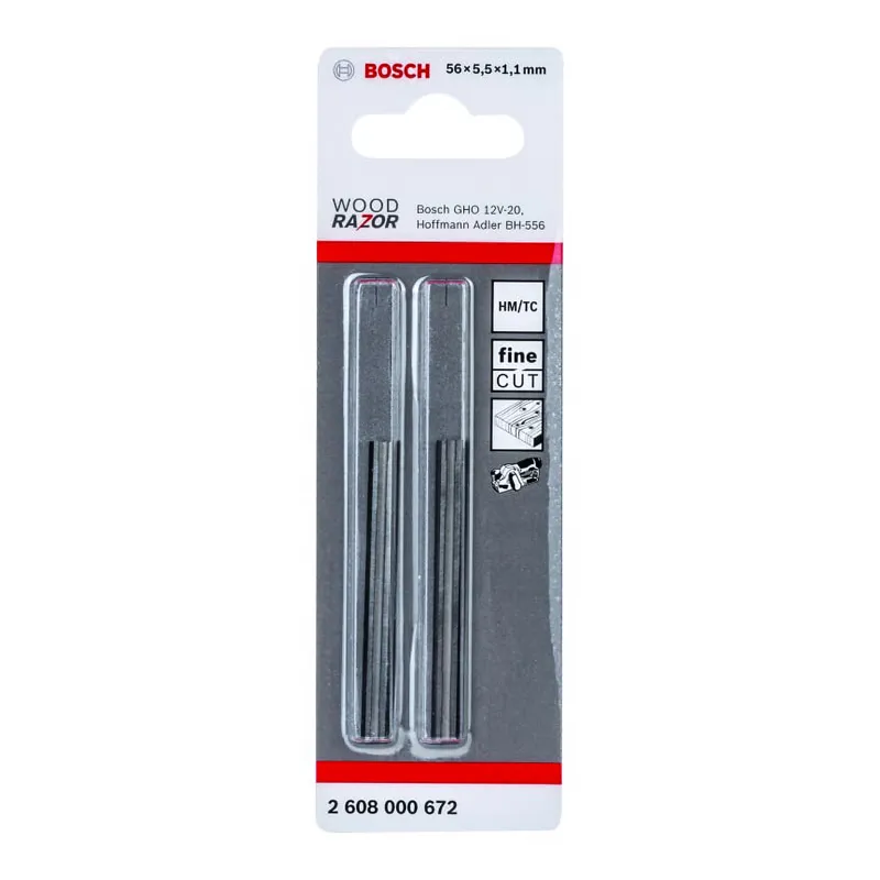 Ножи твердосплавные Bosch 2608000672 предназначены для рубанка Bosch GHO 12V-20. Применяются для обработки древесины. Количество ножей – 2 шт.